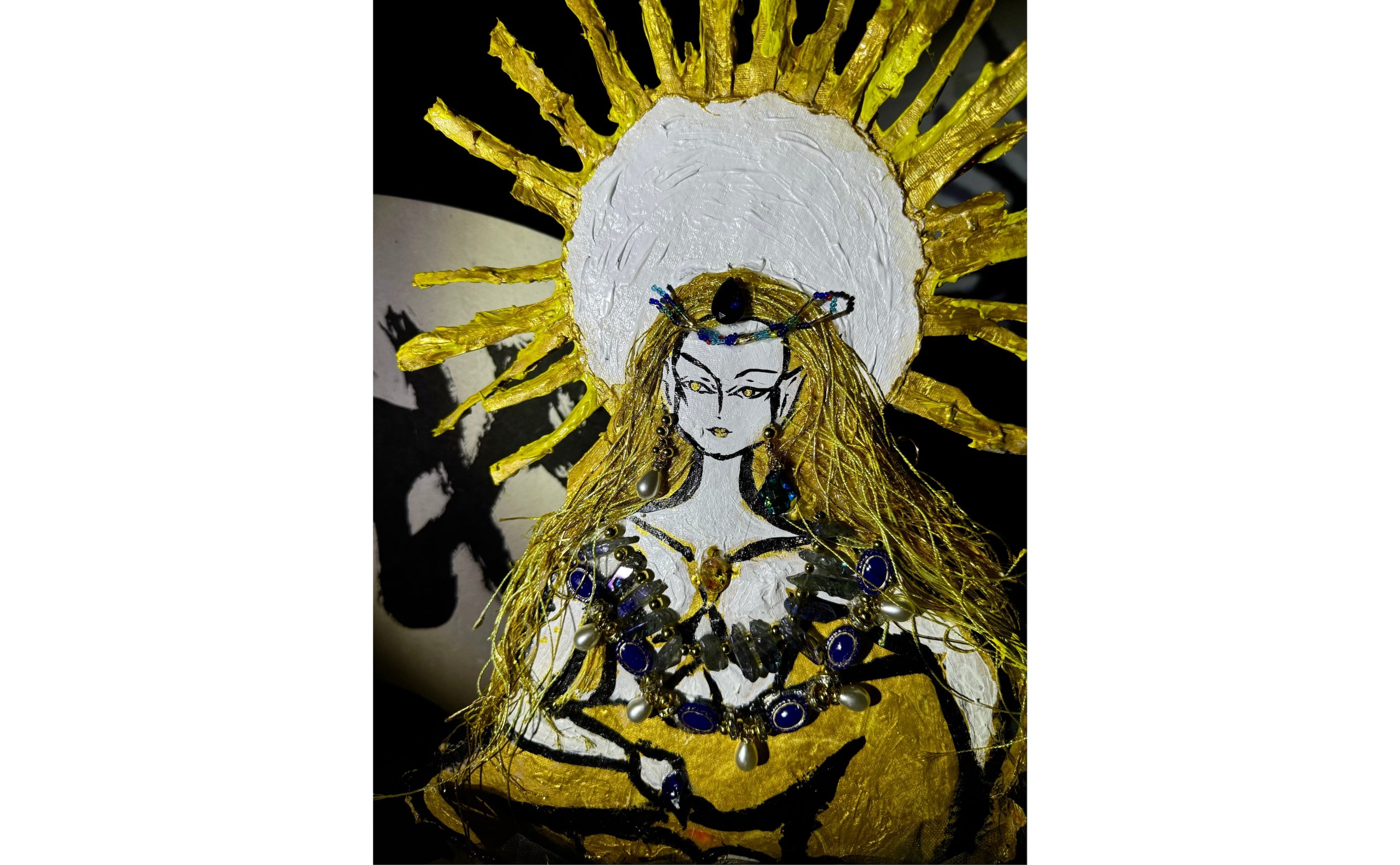 MICO MAI (ミコ マイ) 鬼道アーティスト MICO MAIは1988年生まれ、邪馬台国の卑弥呼の鬼道(神降し)つまり”神技”を使い神をストーリーや詩と添えて作品を創る。8歳から瞑想し、10歳で開き、15歳でカナダ、アメリカ、イギリスで学ぶ。芸術大学 Central Saint Martins卒業後、日本に帰国。聖人に選ばれ竹生島の大弁才天、出羽三山の瀬織津姫、能登の大国主と天之冬衣神に神々の姿絵、鬼道舞、映画を奉納した。現在、日本人の為に100年先の未来へ繋ぐ、アートプロジェクトの一環として、能登の工芸の復興支援を行なっている。