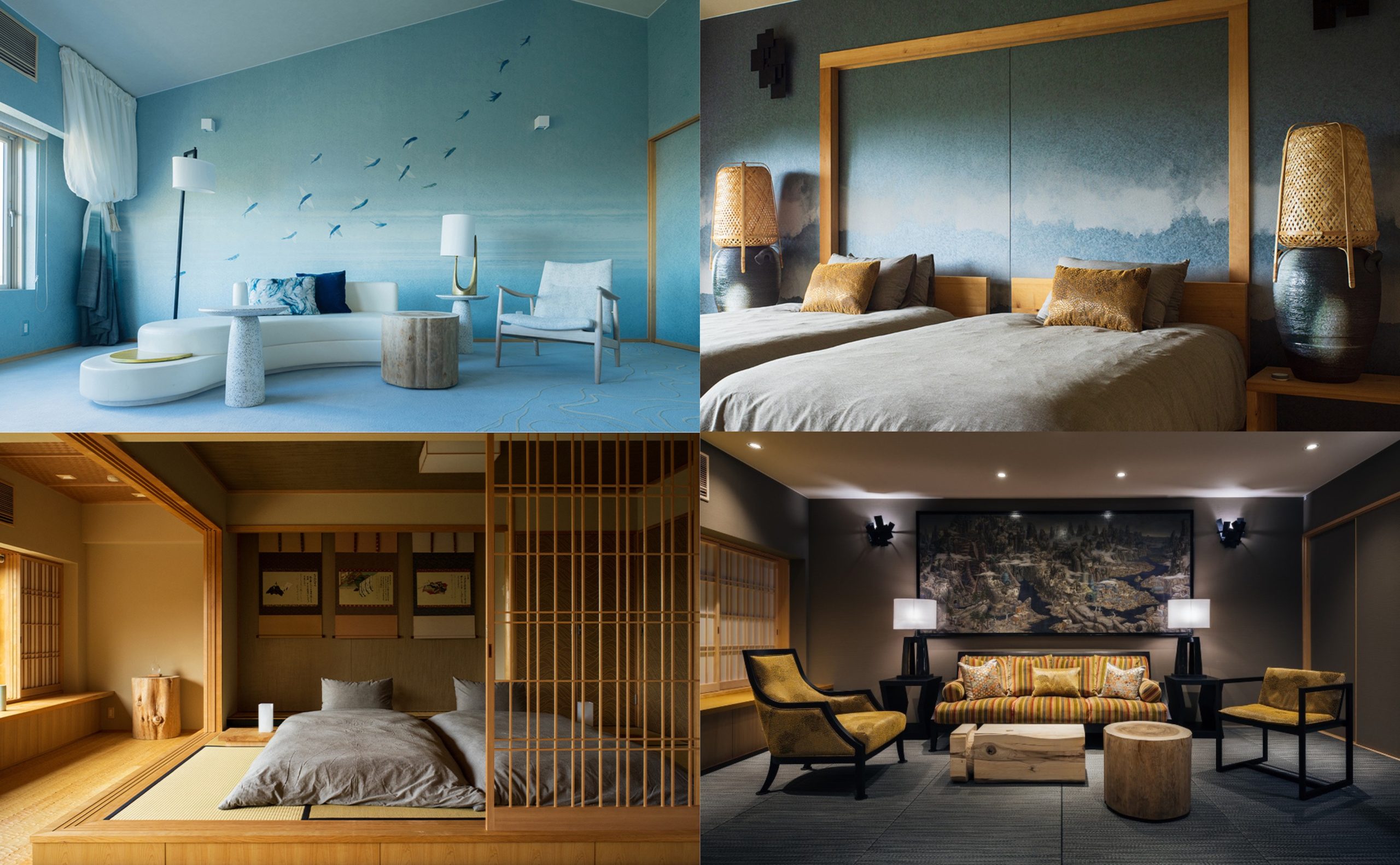 600㎡の大空間が叶える、エンターテインメントな滞在。 テーマは熱海の海と山、そして伝統芸能。 保養所としての役目を終えた、1976年築のコンクリート建築を大胆にリノベーションし、 自然素材をふんだんに用いた心地よい空間へと昇華させました。 LDKは天井高4メートルの開放的な空間。壁には雄大な富士の絵が飾られ、窓の外に目をやれば、 熱海の穏やかな海も楽しめます。LDKの広さは約100㎡。デッキテラスやオープンキッチンとも シームレスにつながっているので、ゲストを招いてのパーティーもおすすめです。 館内には、いたるところにコンテンポラリーアートや伝統工芸品がちりばめられています。 4つの寝室は3人の国際的デザイナーによる「NOU」「CHASHITSU」「MIZU」「YAMA」 という異なるテーマでのデザイン。 2つある浴室では、信楽焼の浴槽と桐の浴槽で熱海温泉を ゆったりとお愉しみいただけます。