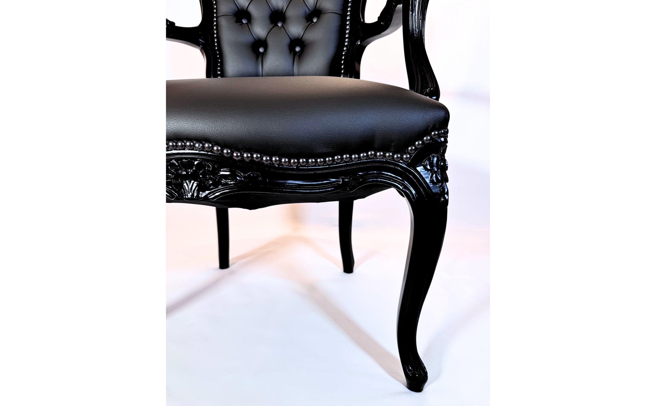 現在生産終了となったカリモク(カリモク家具株式会社)の最高峰DOMANI Louis XV (ルイ15)シリーズのフレームを使用してオリジナルアンティークチェアー を製作いたします。フレームは1980年代と推定。カリモク社がイタリアのフレームメーカーからパーツを輸入し、調湿調整等を行った上で本場の彫りを日本仕様に組み上げた、最も手が掛かっているチェアフレーム。 今では再現不可能な卓越した技術で製作された、チェアフレームにご希望のカラーレザーで、オリジナルのアンティークチェアを製作いたします。 レザーはカラーサンプルからご選択いただけます。本革か、ビニールレザーはおおよそどんな色でも張ることが可能。高級家具を取り扱うAPISの手で新品に仕上げます。