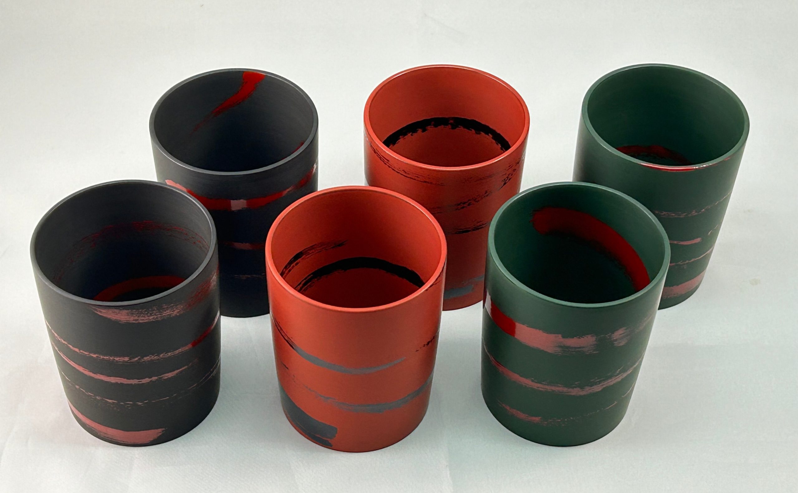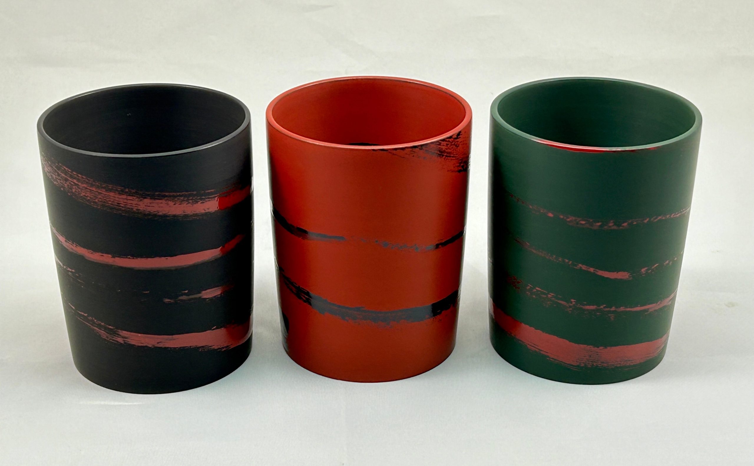 Wassa とは 輪島でいたずらする事、試しにやってみる事を「ワッサする」と言います。 このカップは輪島塗の伝統技法をそのままに 最後の仕上げの上塗りで上塗り師がワッサしてみたものです。たっぷりの上塗り漆で一刷毛描いてみました。 同じ物は一つとしてない 気軽に使える輪島塗カップです。 ビール、水割り、ハイボールなどの冷たいものから お湯割りやお茶、コーヒーなど 保温性があり 冷たさ、熱さが伝わりにくいので持ちやすいく 軽いのでお年寄りや子供さんにも向いています。