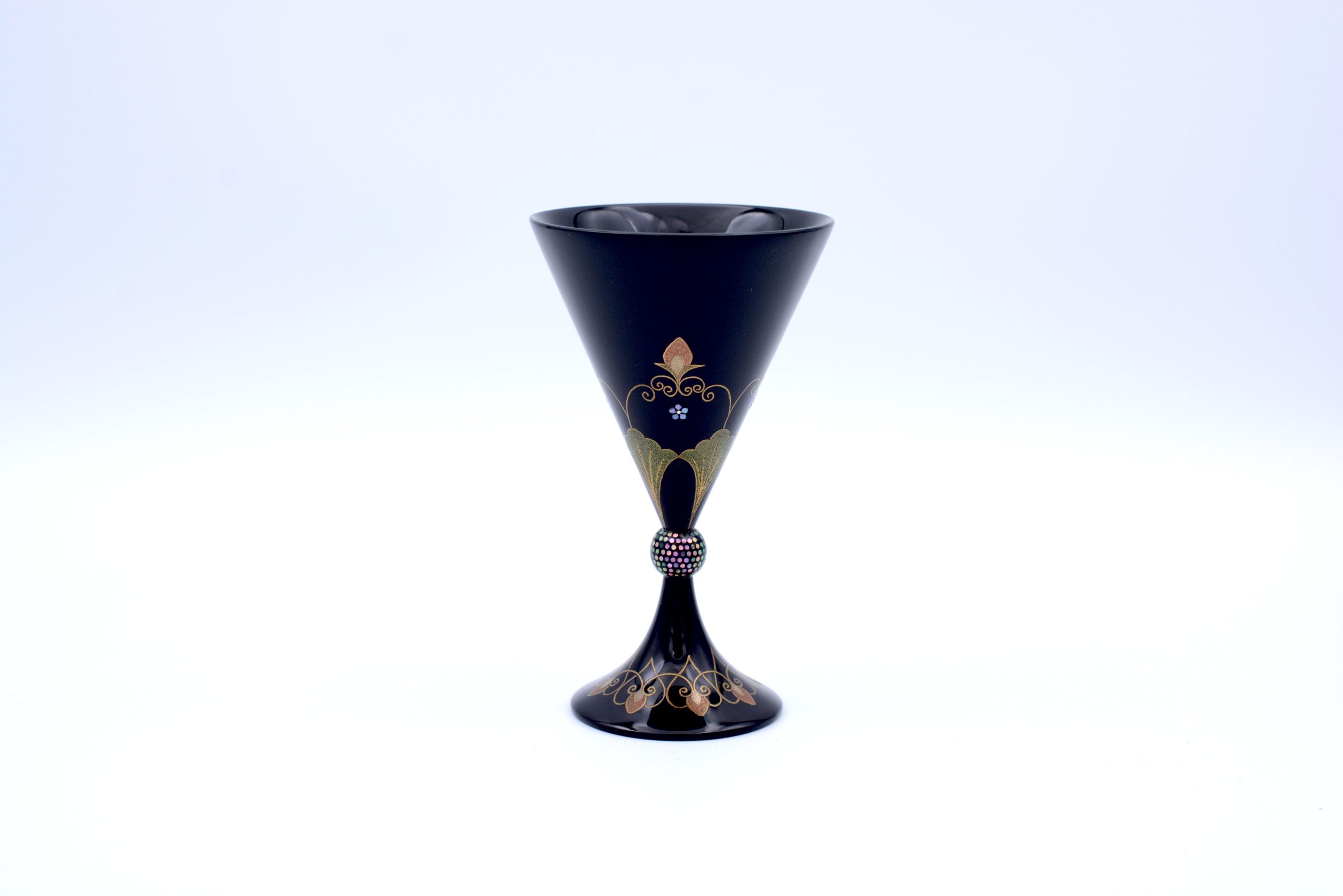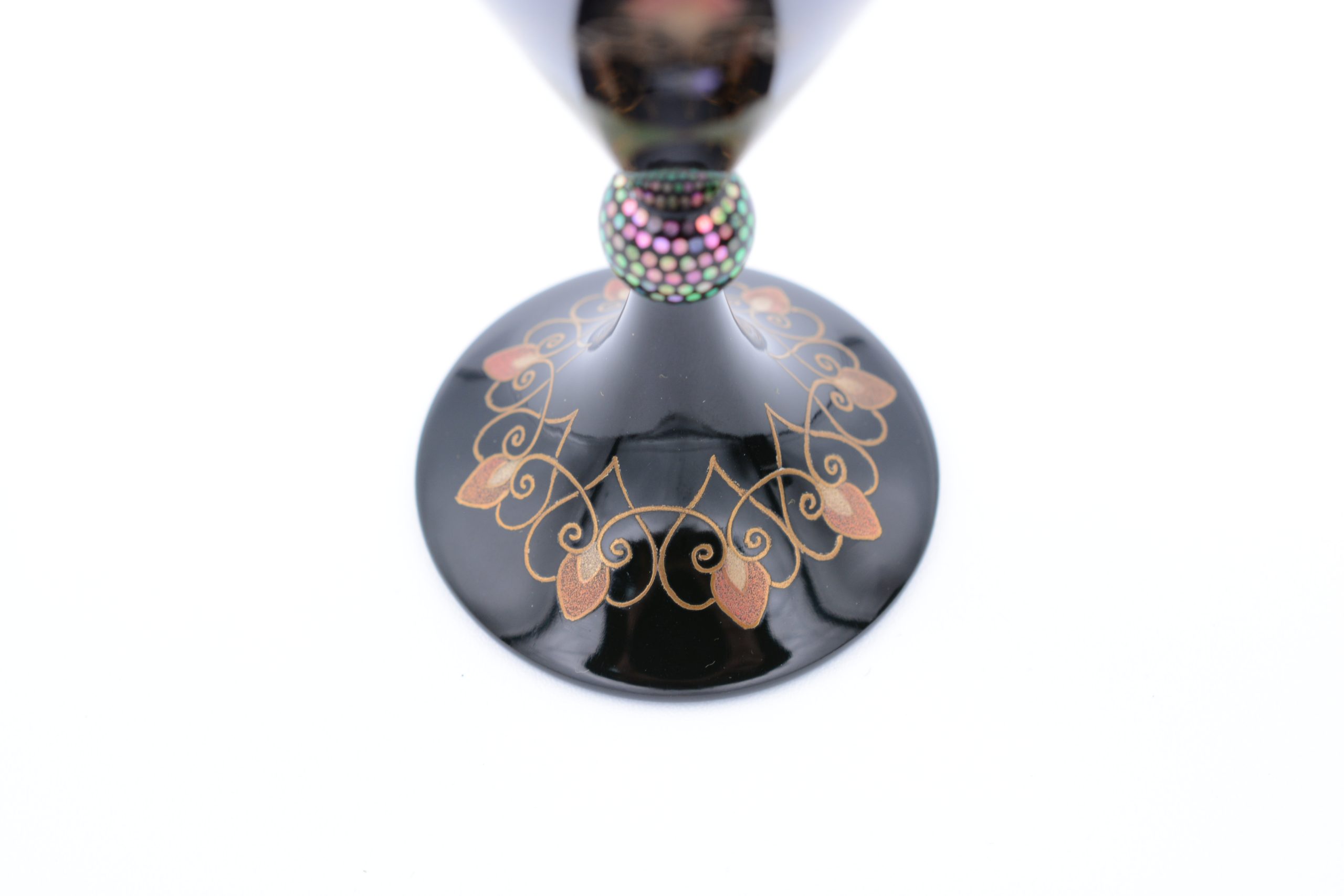 Lot,1 井坂 友美作 高脚盃 黒 苺唐草