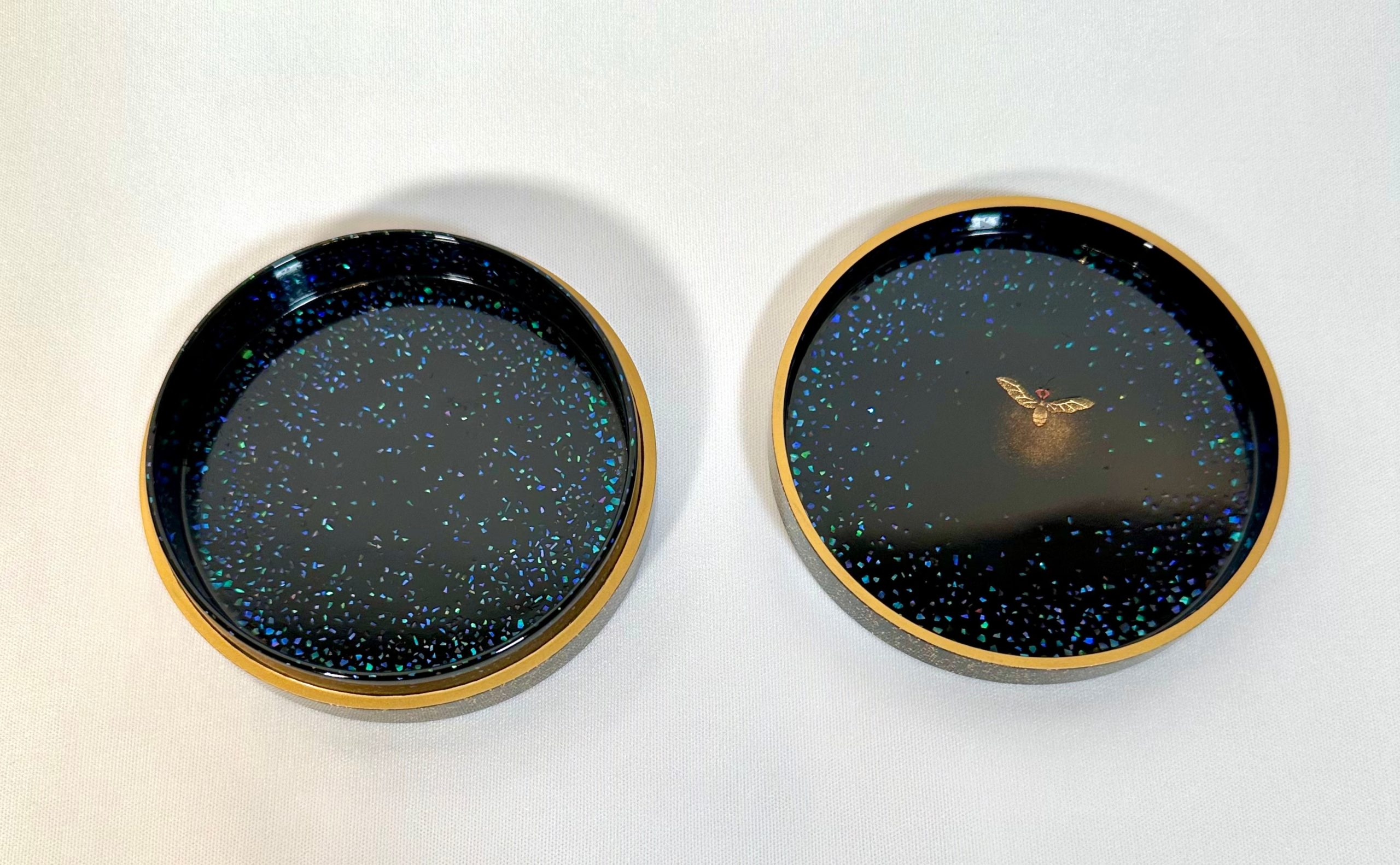 φ95mm H9mm 素材 イチョウ、漆、金、青金、夜光貝 桐箱付
